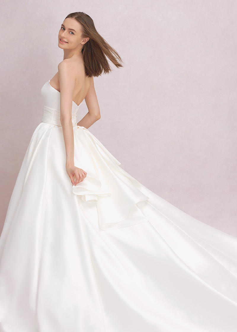 身頃がシンプルでウエストのベルトも取り外し式なのでボレロなどアレンジがしやすいドレスです。