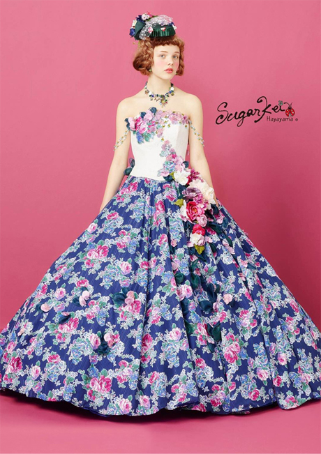 SugarKeiブランド。ストレートな可愛らしさがカッコよくもあり、個性的なドレスに。お花のプリント柄が2WAYタイプになっており、少し大人な女性を演出することも出来ます。