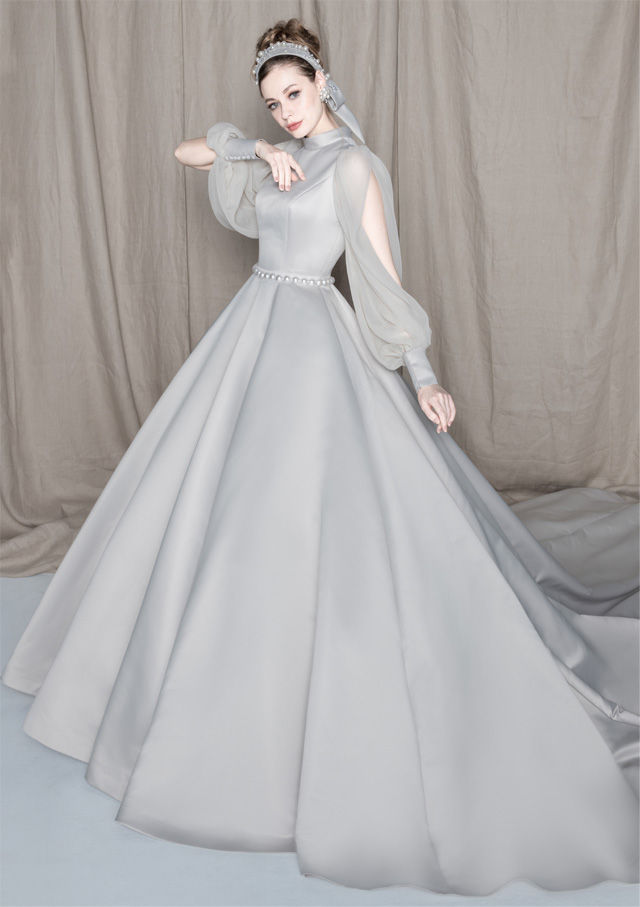 ウエスト部分のパールベルトは取り外し可能な2wayタイプで、今までにないタイプのドレスです。