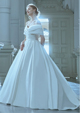 サテンのみで構成された洗練されたデザインで、そのシンプルな白さと光沢が花嫁様の美しさをよりいっそう引き立てる1着です