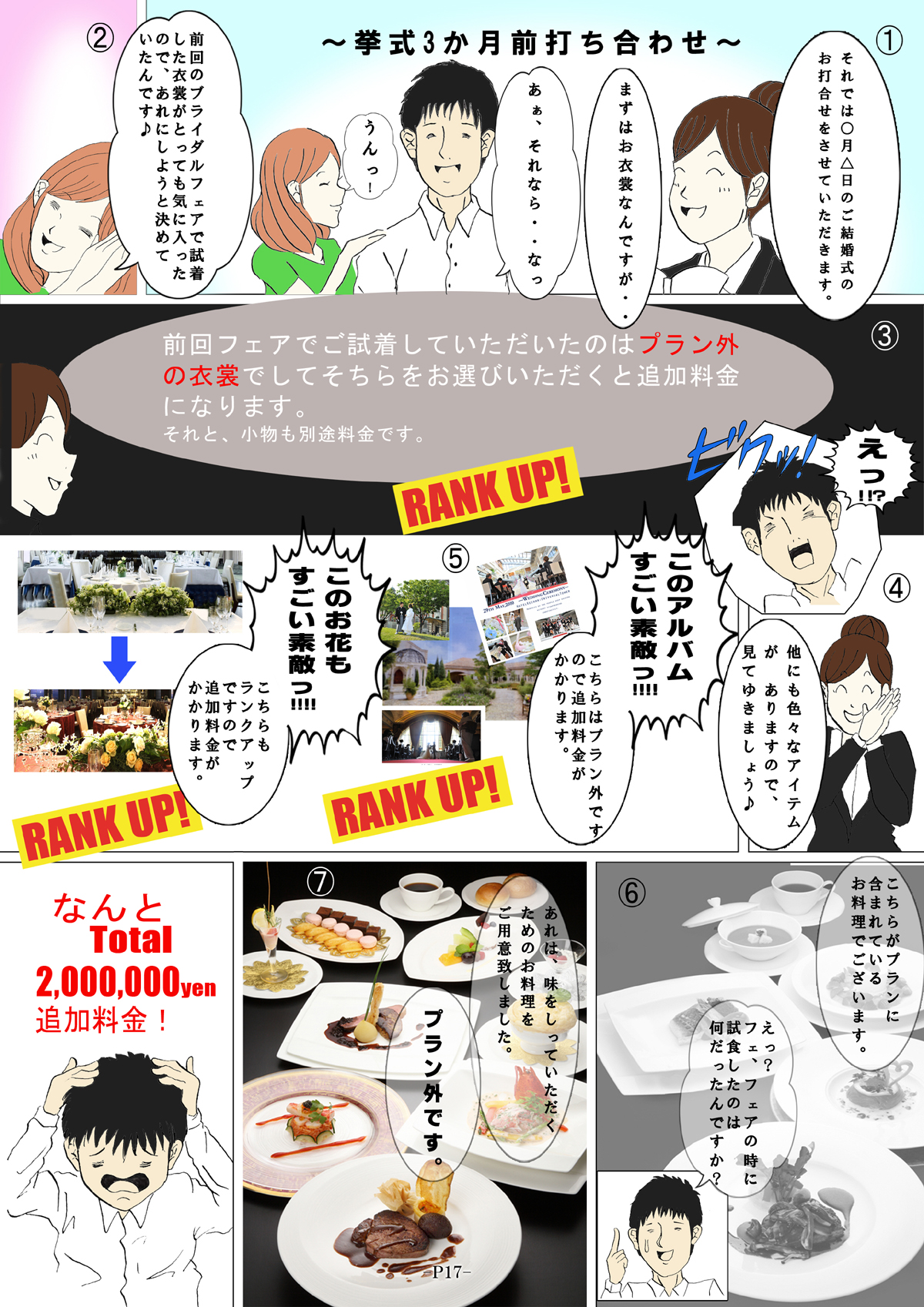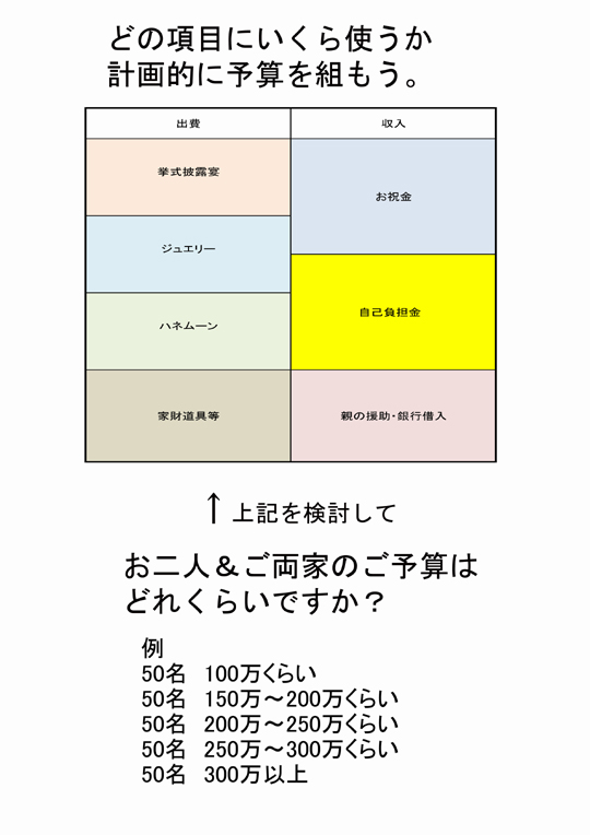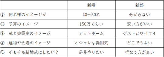 今回は意思の疎通のお話です。 ご来店日2018年11月10日 本日ご来店のお客様は式場相談よりも新郎新婦様の結婚式に対する価値観の違いで相談の来られました。 新婦様は結婚式に対するイメージがお有りで思い描いていることが色々ありましたが、新郎様は全く興味を示されませんでした(と言うより結婚式のことは良く分かっていらっしゃらない)。 表を基に、様々な事例を申し上げ、画像もご覧いただき。約2時間かけてお二人のイメージのすり合わせを行いました。ある程度歩み寄られてから、ドレスのご試着をして頂きましたところ、新郎様が大変喜ばれて、イメージが具体的になりアイデアも沸いてこられました。 次回は具体的に式場選びになります。 |