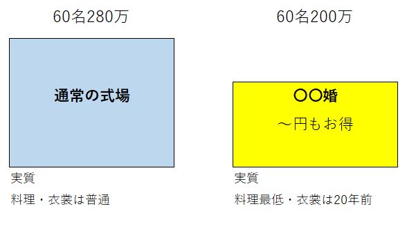 本日(8月25日)にご来店された方のはお料理の美味しいところを教えてほしいとのでした。 予算を伺うと50名で150万までの披露宴、衣裳はウェディング+カラードレス+タキシード。列席の方は親族と会社関係と友人。 そこで例として下記の画像と金額を出してみました。 150万までと予算が決まっているのであれば、どちらの会場を選ばれますか?料理を重視するのであればBの会場になります。 Aの会場で料理を良くすると予算は250万くらいになります。 読者の皆様はどちらを選ばれますでしょうか? |