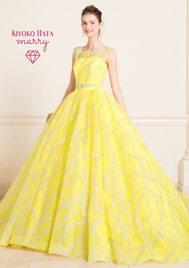 KIYOKO HATA×marryのコラボドレス。 お星様をモチーフにしたキラキラ宇宙ドレスでとっても可愛らしい印象ですが、全体シルエットがすっきりと大人っぽいので上品な魅せ方もできます。