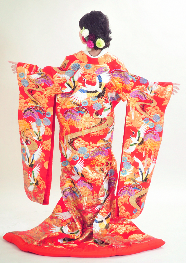 赤地金藤松花鶴