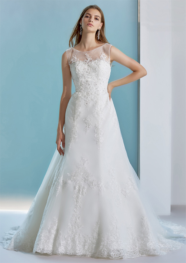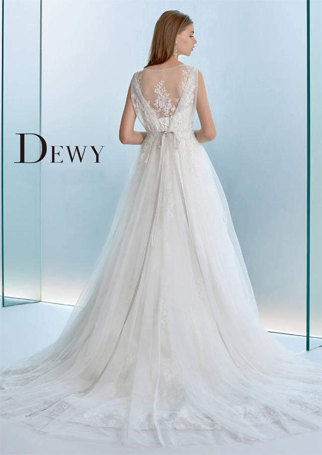 オーバースカートの取り外しで見た目が変わる2wayドレス。オーバースカートを纏えばナチュラルなスレンダースタイル、取り外せばソフトマーメイドなスタイルに。