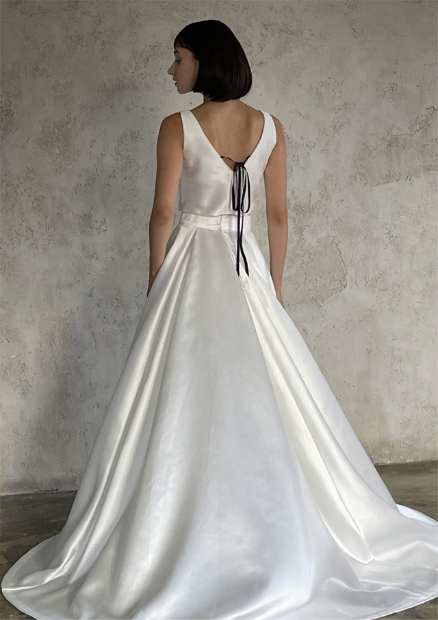 シンプルなデザインの中にも個性が光るこだわりの一着は、新婦の希望を詰め込める無限大のウエディングドレスです。