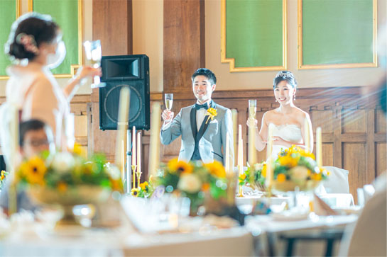 今までの宮崎さんとのお打ち合わせの時に、公会堂で挙式や披露宴をされた方のお写真を沢山見せていただいたことで、イメージが湧いて色々準備が進めやすかったです♪
