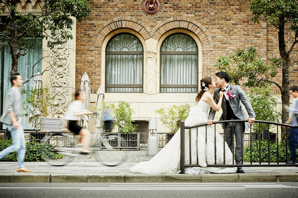 「レトロな建物をバックに、自然な感じで写真を撮りたい」