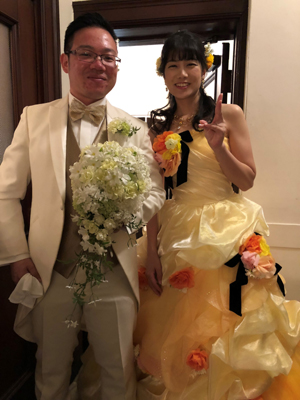 約9カ月前、短い間でしたが結婚式の衣装の件で大変お世話になりました。天気にも恵まれ、ご用意いただいた美しい衣装で大切な人達と多くの写真を撮ることが出来ました。