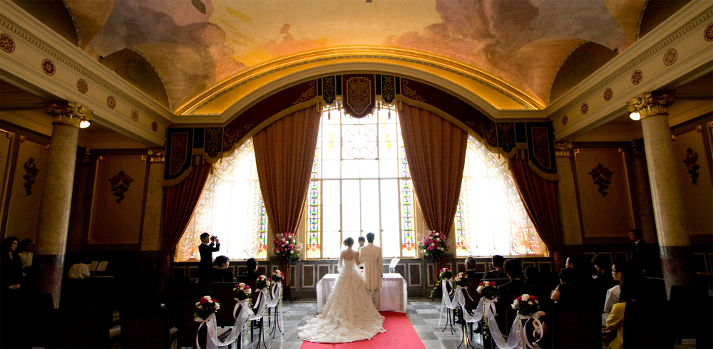 地下鉄淀屋橋駅より徒歩約5分のアクセス。国の重要文化財に指定されている公会堂は着工から100年を迎えました。いつの時代も愛され続けてきた公会堂での結婚式は重厚な雰囲気で行います。優美でクラシカルな雰囲気で、ゲストの皆様を非日常空間へ誘います。