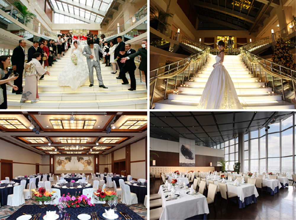 ユニバーサルシティ駅より徒歩約30秒、大阪の観光名所「USJ」もすぐ近くにあるので遠方からお越しになられるゲストを翌日にご案内してあげるのもおもてなしの一つ。大階段が大迫力の「ロビーウエディング」ではミュージカル風の結婚式が人気。地上120mからの絶景を眺めながらの披露宴はより特別な空間を演出します。